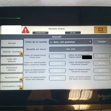 - La nouvelle IHM permet d'ajuster les valeurs de temporisation suivant les produits dans la machine --> Gain de productivité / amélioration de cadence sur certains produits